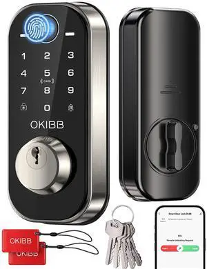 Fingerprint Door Lock for Front Door Built-in Wi-Fi OKIBB, Smart Keyless Entry Door Lock with APP Touchscreen Keypad Deadbolt, Emergency Power Port, One-Touch, IP54 Weatherproof, BHMA Grade 3