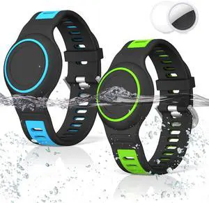 [2-Pack] Waterproof Bracelet for AirTag 2nd Gen (2026) & 1st Gen, Silicone Airtag Wristband Holder Full Coverage Protective Cover Hidden Air Tag Holder for Kids Child Elderly (Blue+Green)