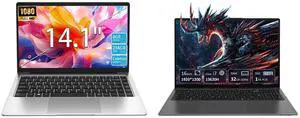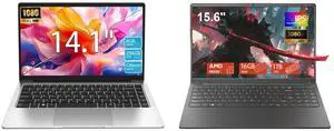 KurieTim 14.1" FHD Laptop Computer, 8GB RAM 256GB SSD, N4020 Processor (2C/2T, Up to 2.80 GHz), WiFi, Webcam, USB-A x2, Mini HDMI, Windows 11 Pro, Portable Notebook PC for Business Student, Silver and KurieTim 15.6" FHD Gaming Laptop 8 Cores AMD Ryzen 7 5825U 2.0-4.5GHz, 16GB DDR4 RAM 1TB SSD, Windows 11 Pro Laptop Computer with Backlit KB, Fingerprint Unlock, Webcam Switch, Gray