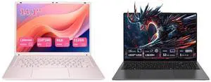 KurieTim Student Laptop Computer, 14.1" 2K FHD IPS Display, 4C/4T Intel Celeron N5105 Processor, 16GB RAM/ 512GB SSD, Windows 11 Laptop with Fingerprint Reader, Backlit KB, Type-C, Webcam Switch, Pink and KurieTim 16" Gaming Laptop i7-13620H(10C/16T, 3.6-4.9GHz), 32GB RAM 1TB PCIe SSD Laptop Computer with Backlit KB, Fingerprint Unlock, Numeric Keypad