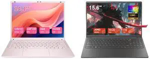 KurieTim Student Laptop Computer, 14.1" 2K FHD IPS Display, 4C/4T Intel Celeron N5105 Processor, 16GB RAM/ 512GB SSD, Windows 11 Laptop with Fingerprint Reader, Backlit KB, Type-C, Webcam Switch, Pink and KurieTim 15.6" FHD Gaming Laptop 8 Cores AMD Ryzen 7 5825U 2.0-4.5GHz, 16GB DDR4 RAM 1TB SSD, Windows 11 Pro Laptop Computer with Backlit KB, Fingerprint Unlock, Webcam Switch, Gray