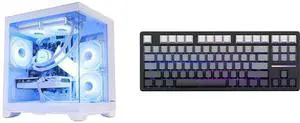 Hoengager Gaming PC AMD Ryzen 7 5700X 8-Core 3.4 GHz, RTX 5060 8GB, 32GB DDR4 RAM 3200MHz,1TB PCIe SSD, WIFI&Bluetooth, 650W PSU, Windows 11 -White and Hoengager Forerunner X87, 87 keys Mechanical Gaming Keyboard, 2.4 GHz / Bluetooth / Wired Connectivity, Side Carving PBT Keycaps, Key Switches with Customized Sound, 10000 mAh built-in Battery