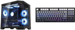 Hoengager Horizon Gaming PC -AMD Ryzen 7 5700X 8-Core 3.4 GHz -Radeon RX 9060 XT 8GB -32GB DDR4 RAM-1TB PCIe SSD -WIFI &Bluetooth -RGB Fans-Prebuilt PC Windows 11 Desktop 650W PSU-Black and Hoengager Forerunner X87, 87 keys Mechanical Gaming Keyboard, 2.4 GHz / Bluetooth / Wired Connectivity, Side Carving PBT Keycaps, Key Switches with Customized Sound, 10000 mAh built-in Battery