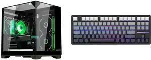 Hoengager Horizon Gaming PC -AMD Ryzen 7 5700X 8-Core 3.4 GHz -Radeon RX 9060 XT 16GB -32GB DDR4 RAM-1TB PCIe SSD -WIFI &Bluetooth -RGB Fans-Prebuilt PC Windows 11 Desktop 650W PSU-Black and Hoengager Forerunner X87, 87 keys Mechanical Gaming Keyboard, 2.4 GHz / Bluetooth / Wired Connectivity, Side Carving PBT Keycaps, Key Switches with Customized Sound, 10000 mAh built-in Battery
