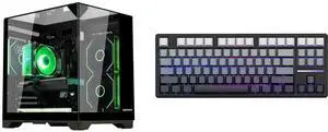 Hoengager Horizon Gaming PC -AMD Ryzen 7 5700X 8-Core 3.4 GHz -RTX 3050 6GB -32GB DDR4 RAM-1TB PCIe +1TB SATA SSD -WIFI &Bluetooth -RGB Fans-Prebuilt PC Windows 11 Desktop 650W PSU-Black and Hoengager Forerunner X87, 87 keys Mechanical Gaming Keyboard, 2.4 GHz / Bluetooth / Wired Connectivity, Side Carving PBT Keycaps, Key Switches with Customized Sound, 10000 mAh built-in Battery
