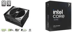 ASRock TC-1650T 1650 W Power Supply Intel Core Ultra 7 265K, Arrow Lake 20-Core (8P+12E), LGA 1851, 125W Desktop Processor - BX80768265K
