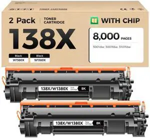 138X Toner Cartridge 2-Black with chip High Yield Replacement for HP 138X W1380X 138A W1380A Compatible with HP LaserJet Pro 3001dw 3001fdw MFP 3101fdw Printer Ink 3001dwe 3001fdwe 3101fdwe All-in-One