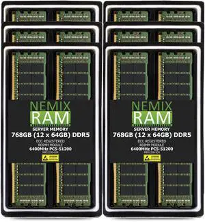 NEMIX RAM 768GB (12X64GB) DDR5 6400MHz PC5-51200 2Rx4 1.1V CL52 288-PIN ECC RDIMM Registered Server Memory Kit Compatible with SuperMicro GPU A+ Server AS-8126GS-NB3RT - OEM