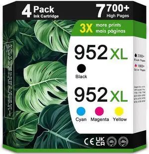 952XL Ink Cartridge (4-Pack) Replacement Compatible for HP 952 XL Combo Pack High Yield for HP952 OfficeJet Pro 8720 8725 8210 8710 8715 8702 8740 7740 7720 8730 Printer (Black Cyan Magenta Yellow)