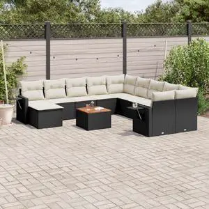 vidaXL Patio Sofa Set with Cushions Outdoor Furniture 12 Piece Black Poly Rattan
