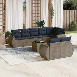 vidaXL 9 Piece Garden Sofa Set with Cushions Grey Poly Rattan