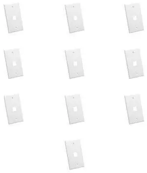 Single Gang 1 Port Flat Keystone Wall Plate - White for Ethernet or Phone Connections 10 Pcs Pack