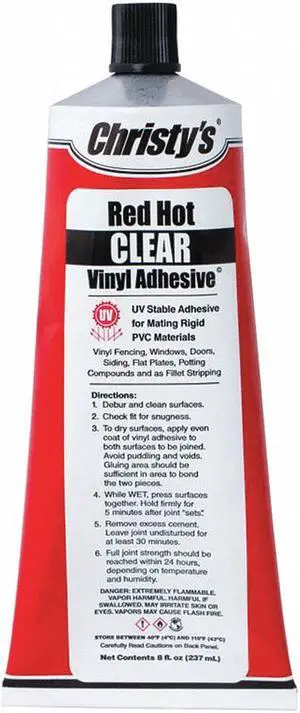 CHRISTY'S 34664 Vinyl/PVC Adhesive, Clear, 8 oz.