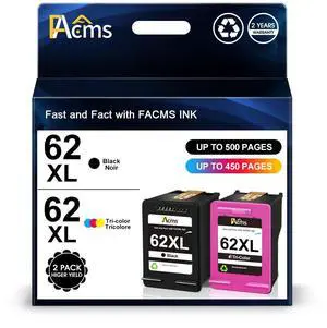 Valuetoner Remanufactured Ink Cartridge Replacement 62XL 62 XL to use with Envy 5540 5640 5660 7644 7645 OfficeJet 5740 8040 OfficeJet 200 250 Series Printer (1 Black, 1 Tri-Color, 2-Pack)