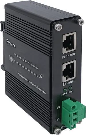 Hardened Industrial Gigabit PoE+ Injector 12-48VDC Input with DIN-Rail and Wall Mount Connecting The IEEE 802.3 af/at PoE Device (30W)