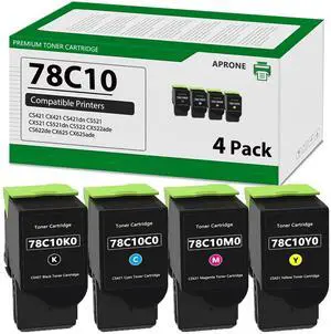 78C10K0 78C10C0 78C10M0 78C10Y0 Toner Cartridges(4Pack, 1BK/1C/1M/1Y) Compatible Replacement for Lexmark 78C10 Toner Cartridge Set Work for CS421dn CS521dn CS622de CX421adn CX522ade CX622ade Printer