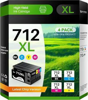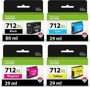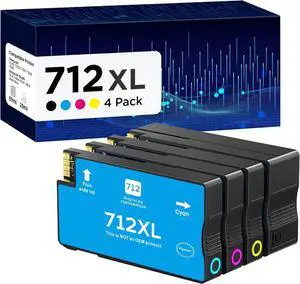 712 Compatible Ink Cartridges 712 XL 712XL Ink Cartridges-Compatible with DesignJet T210 T230 T250 T630 T650 Printers (4 Pack BK/C/M/Y)