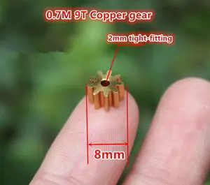 10pcs/lot, 0.7M 9T cooper gear outside diameter 8mm 9teeth gear for 2mm shaft motor~