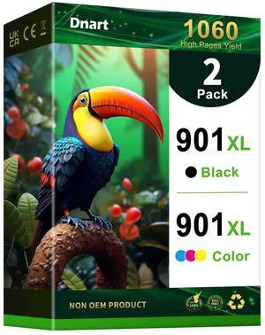 DNART 901XL Ink Cartridge Replacement for HP 901 Ink Cartridges Black/Color Combo Pack for Ink 901XL use for HP OfficeJet 4500, J4524, J4540, J4550, J4580, J4624, J4680 Printer 901XL (2 Pack)