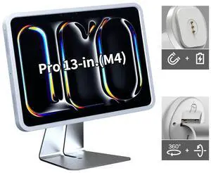 EMONITA Magnetic Stand on Desk with Charging Case A13 for iPad Pro 13-Inch (M4), Classic L Shape, Sturdy Metal Base, Strong Magnets, 360 Rotation, 90 Tilt
