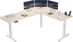 VIVO Light Wood / White Electric 75" x 63" Corner Desk Workstation