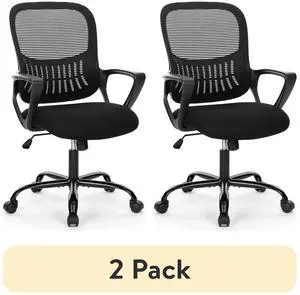 edx Desk Chair with Ergonomic Lumbar Support for Home, Office, Bedroom, 250lbs 2 PackBlack