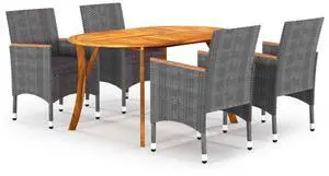 vidaXL 4 Piece Patio Lounge Set with Cushions Black Poly Rattan