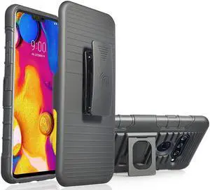 Black Magnet Grip Case Rugged Cover Stand + Belt Clip Holster for LG V40 ThinQ