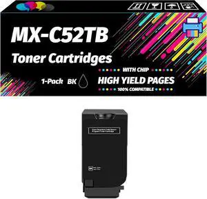 Compatible with Sharp MX-C52TB MX-C52TC MX-C52TM MX-C52TY Toner Cartridges Work for Sharp MX-C528F MX-C428F Printers (1 Pack Black)