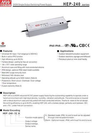 MEAN WELL HEP-240-48A 48V 5A 240W Single Output Switching Power Supply Harsh Environment