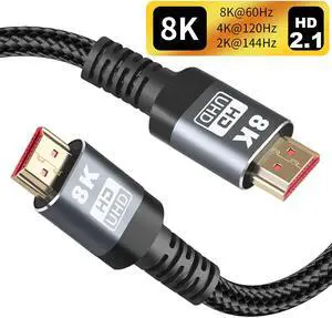ZILR ZILR 8K Ultra Speed HDMI 2.1 Cable 2M/6.6' Type-A to Type-A, Secure Locking, PS5, 8K60, 4320p, 4K120, 2160p, HD240, 1080p 3D, 48Gbps, 10bit Color, Audio Return(eARC), HDCP2.2, HDR10, Ethernet