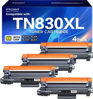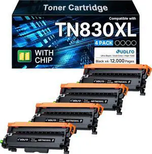High-Yield TN830XL Toner Cartridge 4-Pack with Chip, Replacement for HL-L2460DW, DCP-L2640DW, HL-L2360DW, MFC-L2700DW