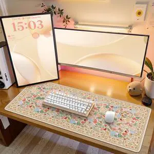 iCasso Desk Cover Mat, Extra Large Floral Mouse Pad, Desk Pad Mat,Office Matt for Desktop Protector, Anti-Slip XXL Big Mousepad with Stitched Edges for Laptop Computer Keyboard(White)