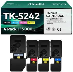 4 Colors Compatible Toner Cartridges TK5242 TK-5242 High Capacity 4000 Pages for Black, 3000 Pages for Cyan Magenta Yellow for Kyocera ECOSYS P5026cdn P5026cdw M5526cdn M5526cdw Laser Printers