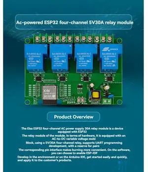 ESP32 Development Board 4 Channel Relay Module 5V/30A AC220V Bluetooth Connectivity