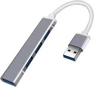 USB 3.0 4 Port Hub Splitter Slim & Sleek Aluminum for PC Mac Laptop Desktop Gray
