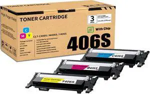 3 Pack C/M/Y CLT-C406S M406S Y406S Toner Cartridge, Compatible for Samsung CLT-C406S M406S Y406S CLT-C406S M406S Y406S Toner Replacement for CLP-365 365W 360 Xpress C410W C460FW CLX-3305FN Printer