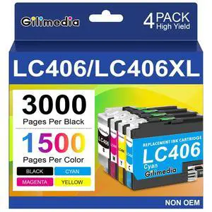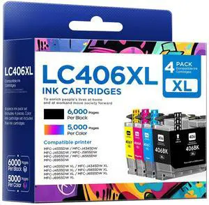 LC406XL LC406 Ink Cartridges for Brother MFC-J4335DW MFC-J4345DW MFC-J4535DW MFC-J5855DW MFC-J5955DW MFC-J6555DW MFC-J6955DW Inkvestment Tank All-in-One Printer(Black, Cyan, Magenta, Yellow)