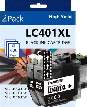 LC401XL LC401 401 Black lc401xlbk MFC-J1010DW Ink Cartridges for Brother Printer LC401bk 401XL for MFC-J1010DW MFC-J1170DW MFC-J1012DW MFC J1010DW High Yields Black (lc401 XL 2bk)