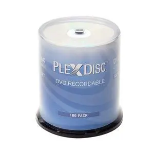 PlexDisc DVD-R 4.7GB 16X Silver Inkjet Printable Surface Hub Printable - 100pk Cake Box (FFP) 632-315-BX, 100 Discs