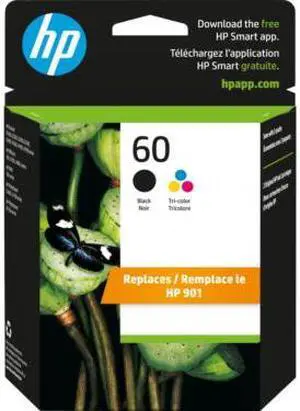 HP 60 2-pack Black/Tri-color Original Ink Cartridges, ~200 pages, N9H63FN#140
