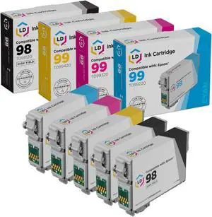 LD Products Ink Cartridge Replacement for Epson 98 & 99 High Yield (2 Black, Cyan, Magenta, Yellow, 5-Set) compatible with Artisan 700, 710, 725, 730, 810, 835, 837- Cartridge Quantity: 1
