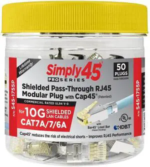 Simply45 Cat 6/6a UTP Unshielded WE/SS RJ45 Standard Modular Plug with Bar45 Load Bar for Cat6/6a - Green Tint - 100-Piece Jar, 3 Prong Pin Design - S45-1100