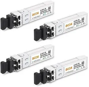 4PCS 10GBase-SR SFP+ Module, Multi-Mode LC Ethernet Transceiver, 10G 850nm MMF up to 400m, Compatible with Cisco SFP-10G-SR, Meraki, Ubiquiti UF-MM-10G, Mikrotik, Netgear, HPE, TP-Link, Aruba and More