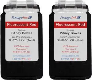 SL-870-1 XXL Red Ink Cartridge 16ml Compatible for SL870-1 Replacement for Pitney Bowes SendPro Mailstation Postage Meter (CSD1) 2-Pack Fluorescent Red