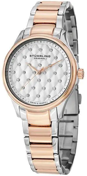 Stuhrling Original Womens 567.03 Vogue Swiss Quartz Crystal Dial Two Tone Rose Watch
