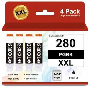 280XXL PGI-280XXL PGBK Ink cartridges Replacement for Canon280 PGI280XXL 280 XXL Compatible with TR8620a TR8622a TR8600 TR8520 TS9521c TR7520 TS9120 TR8622 TS9520 TS6220 TS6320 TS702a Printers-4 Pack