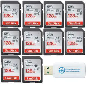 SanDisk 128GB Ultra - 10 Pack UHS-I Class 10 SD Flash Memory Card Retail (SDSDUNR-128G-GN6IN) - Bundle with (1) Everything But Stromboli Combo Card Reader