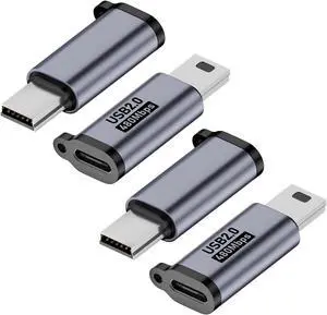 Mini USB 2.0 to USB C Adapter (4 Pack) USB Type C Female to Mini USB Male Converter Connector for Digital Camera MP3 Players Dash Cam GPS Receiver and More (Grey)