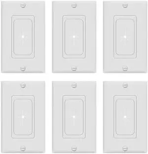 Flexible Rubber Wall Grommet Insert with Decorator Wall Plate, Pass Through Plate for Low-Voltage Cables, Size 1-Gang 4.50" x 2.75," Polycarbonate Thermoplastic, White, 6 Pack